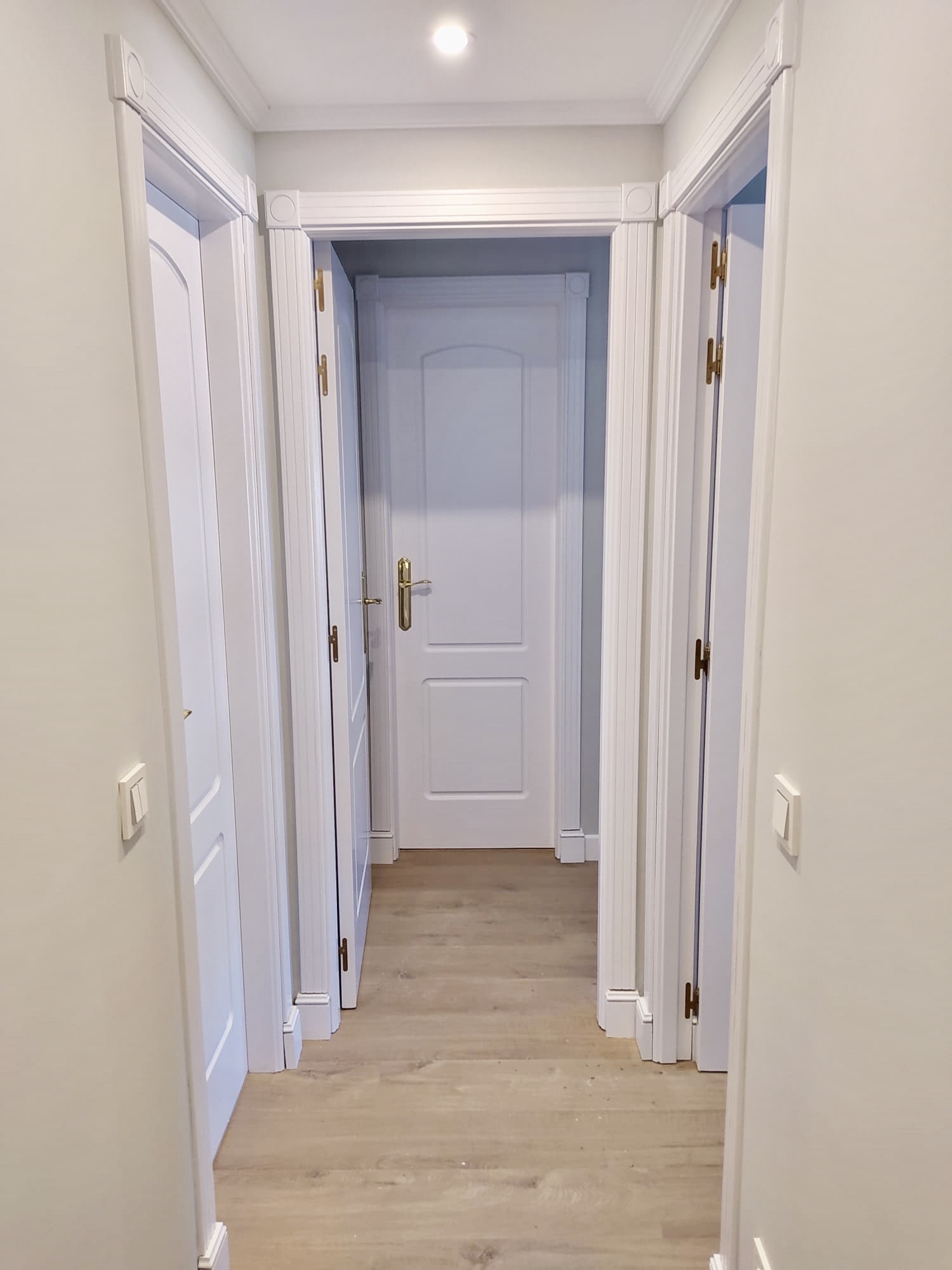 En este preciso piso se han realizado trabajos de lacado en blanco satinado de puertas de paso y armarios.