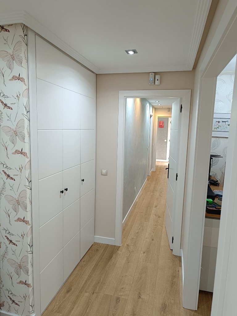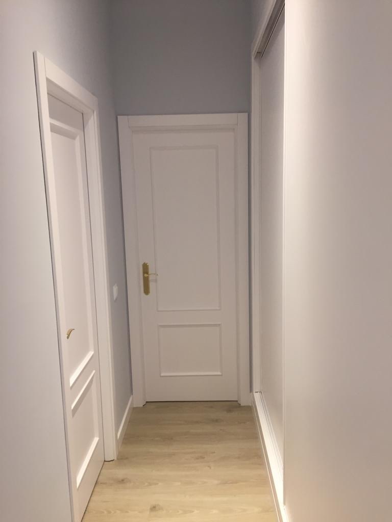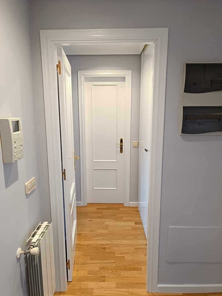 Un precioso piso muy amplio en la zona de Carabanchel Alto ha solicitado nuestros servicios para lacado de puertas de paso y armarios y cambio de rodapié en color blanco a juego con las puertas.