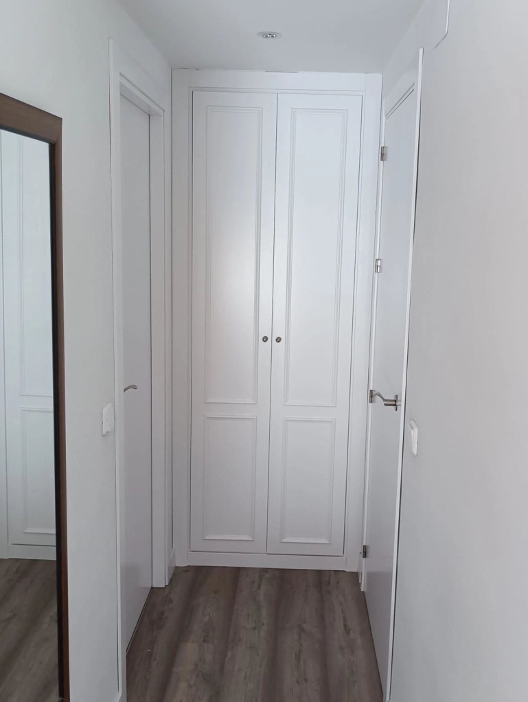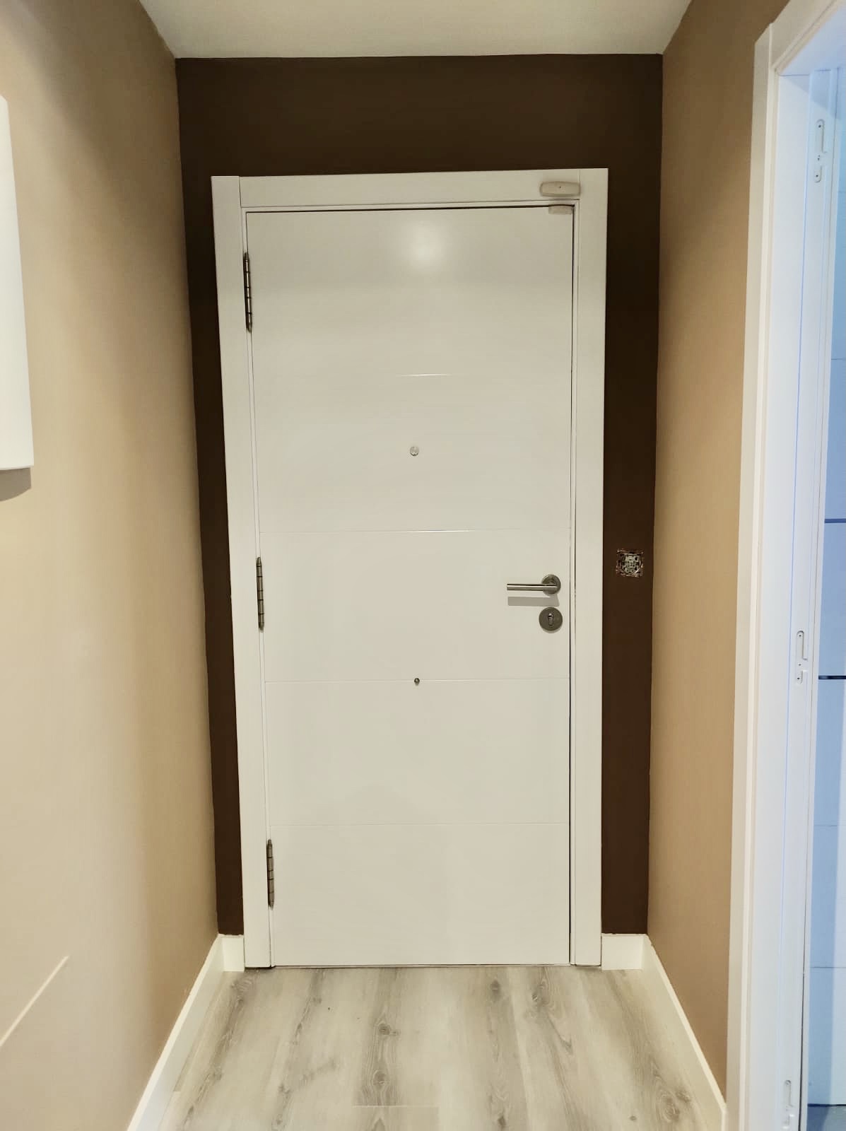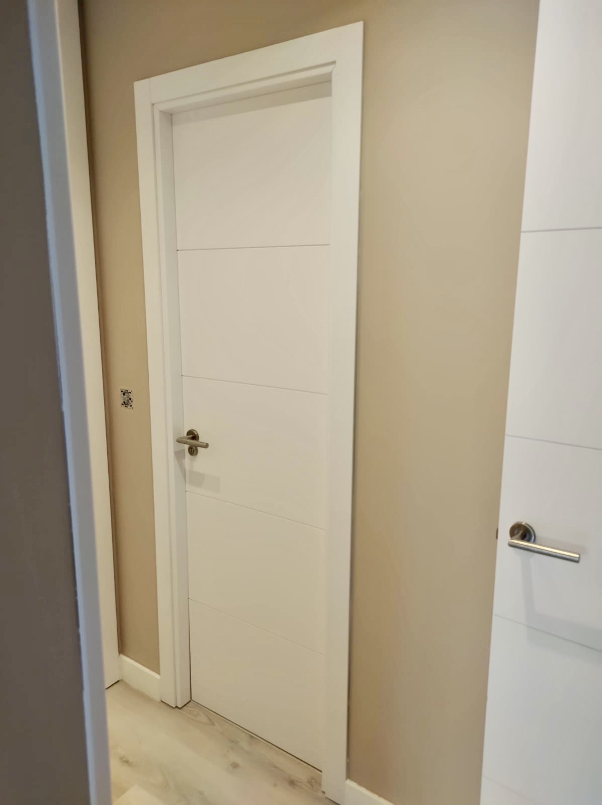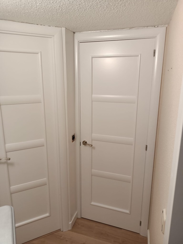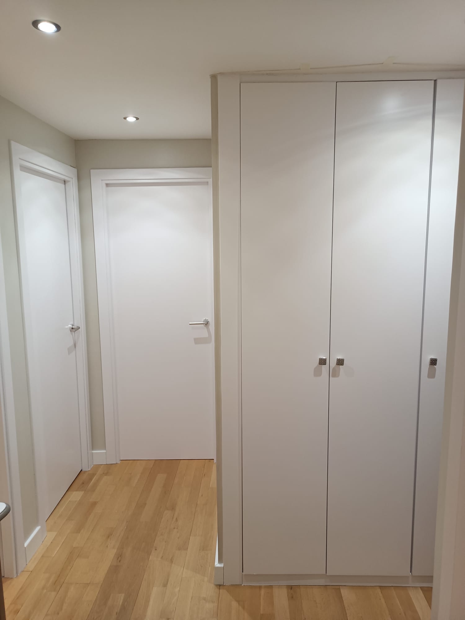Se han realizado trabajos de lacado en blanco satinado de puertas de paso, armarios y puerta blindada.