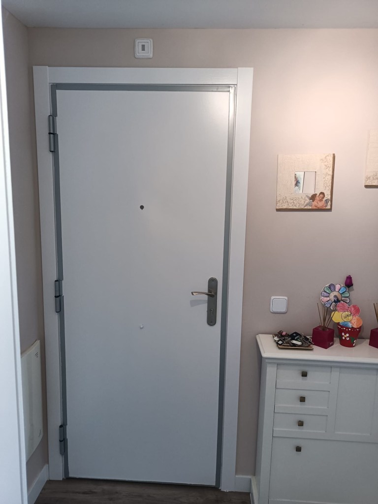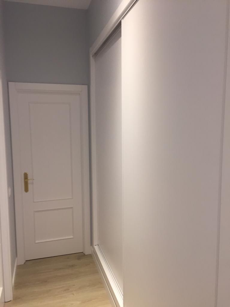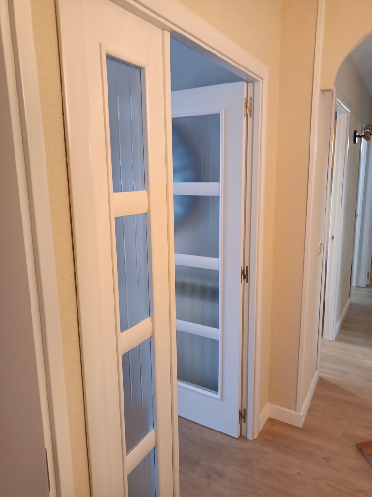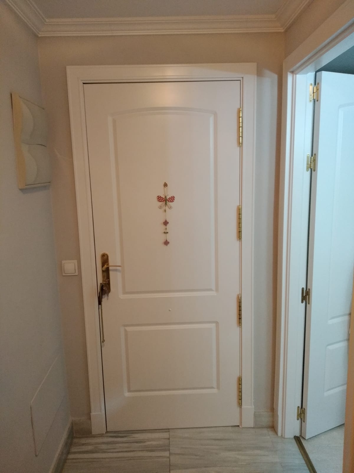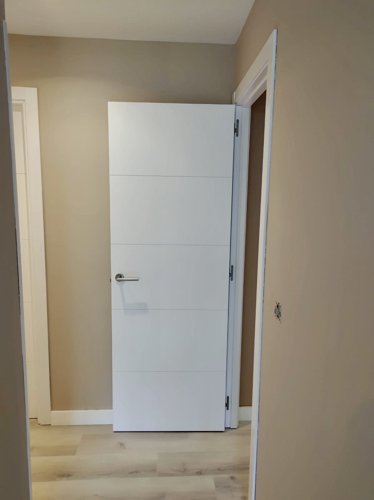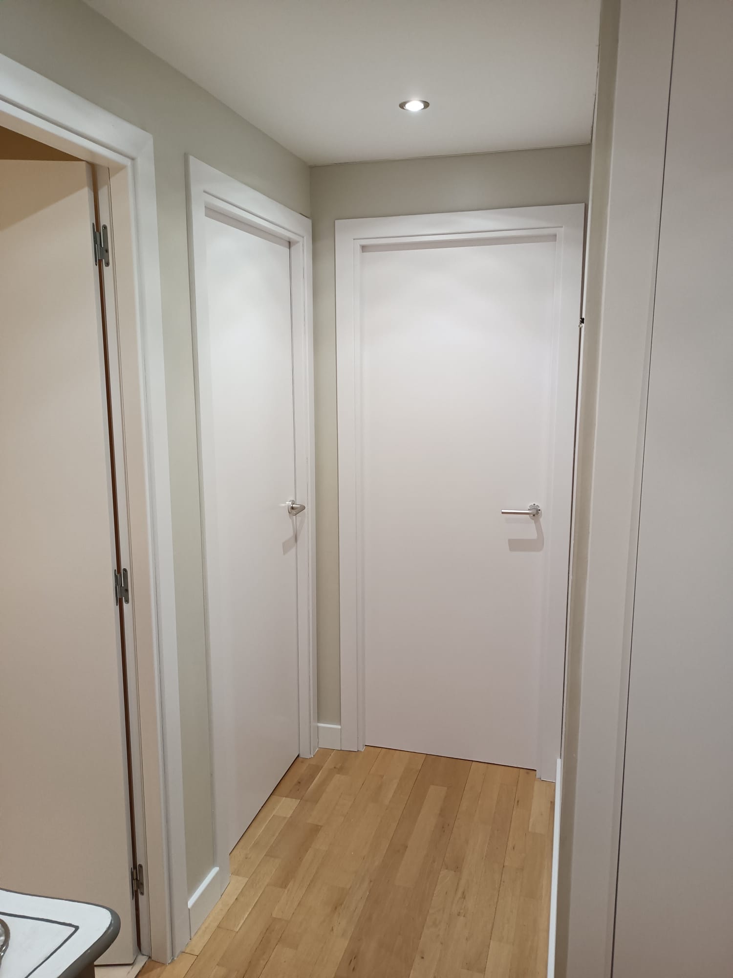 Se han realizado trabajos de lacado en blanco satinado de puertas de paso, armarios y puerta blindada.