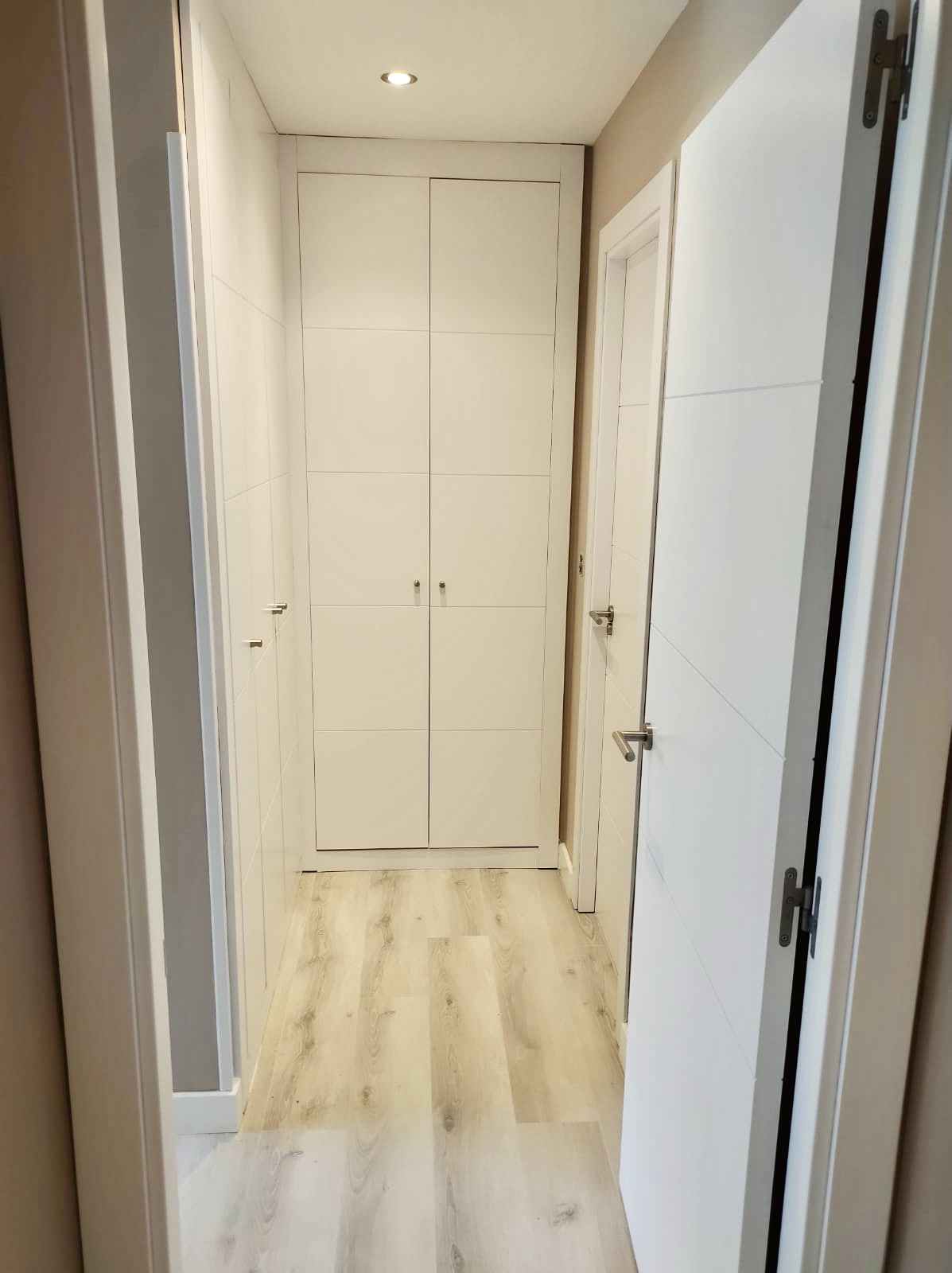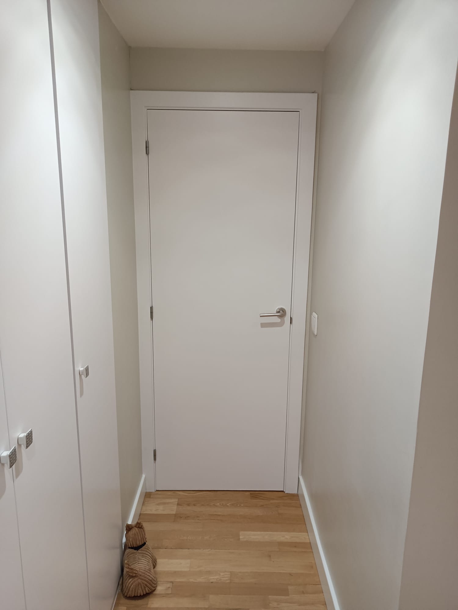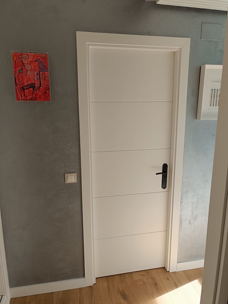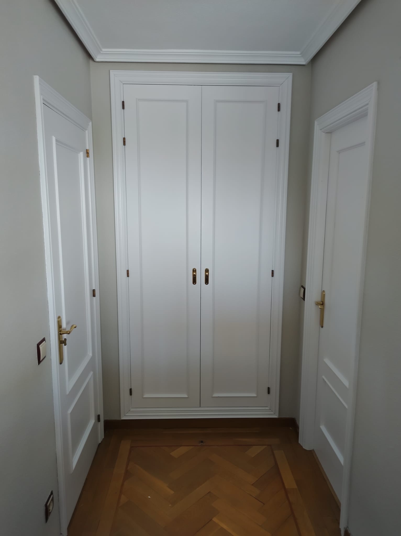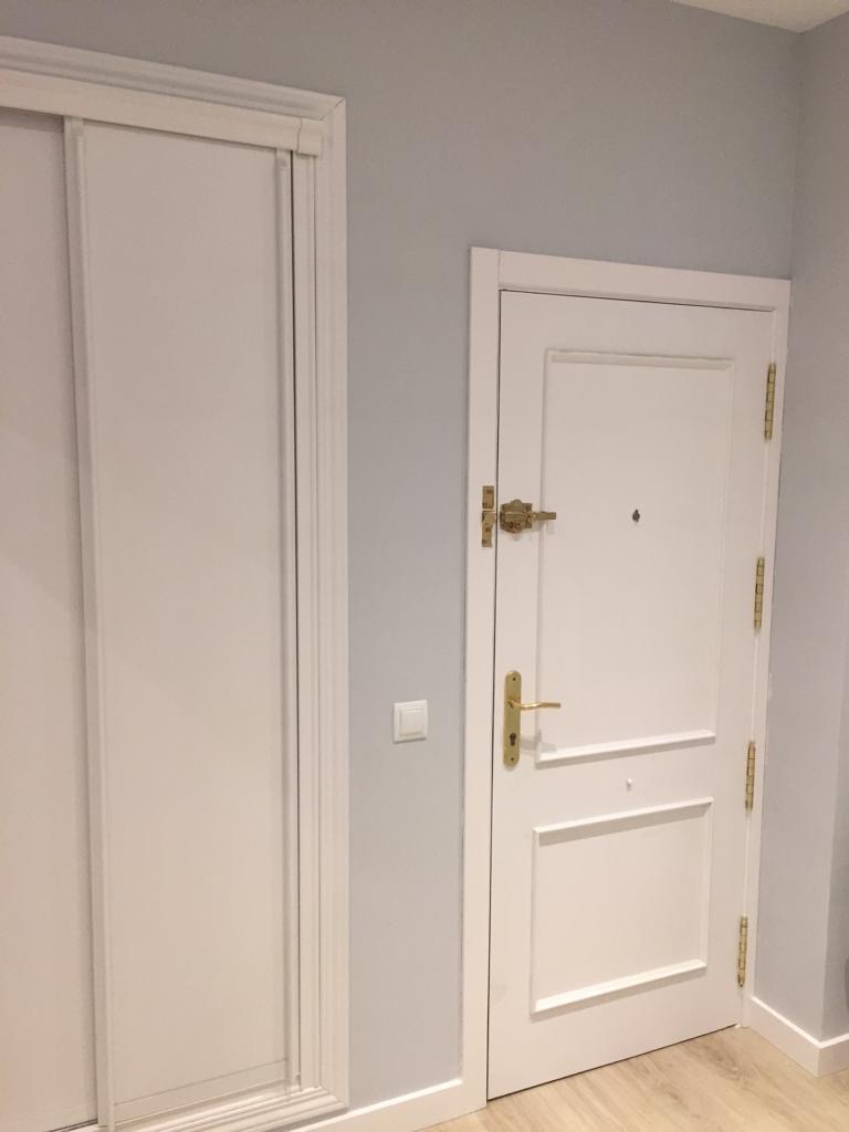 Se han realizado trabajos de lacado en blanco satinado de puertas de paso, armarios y puerta blindada.