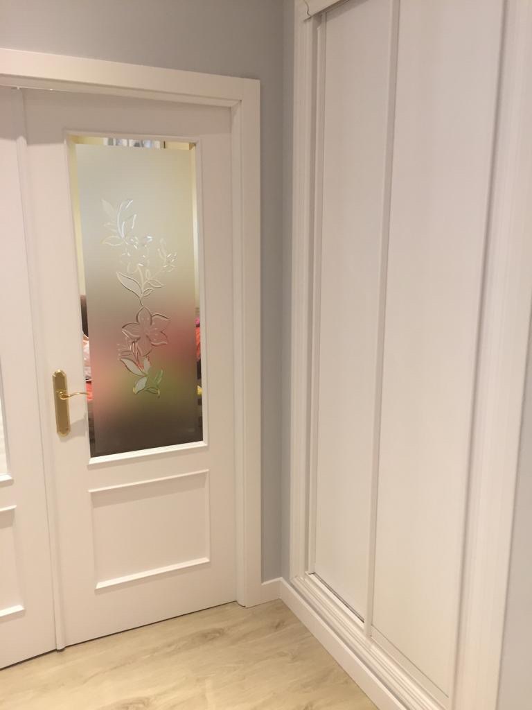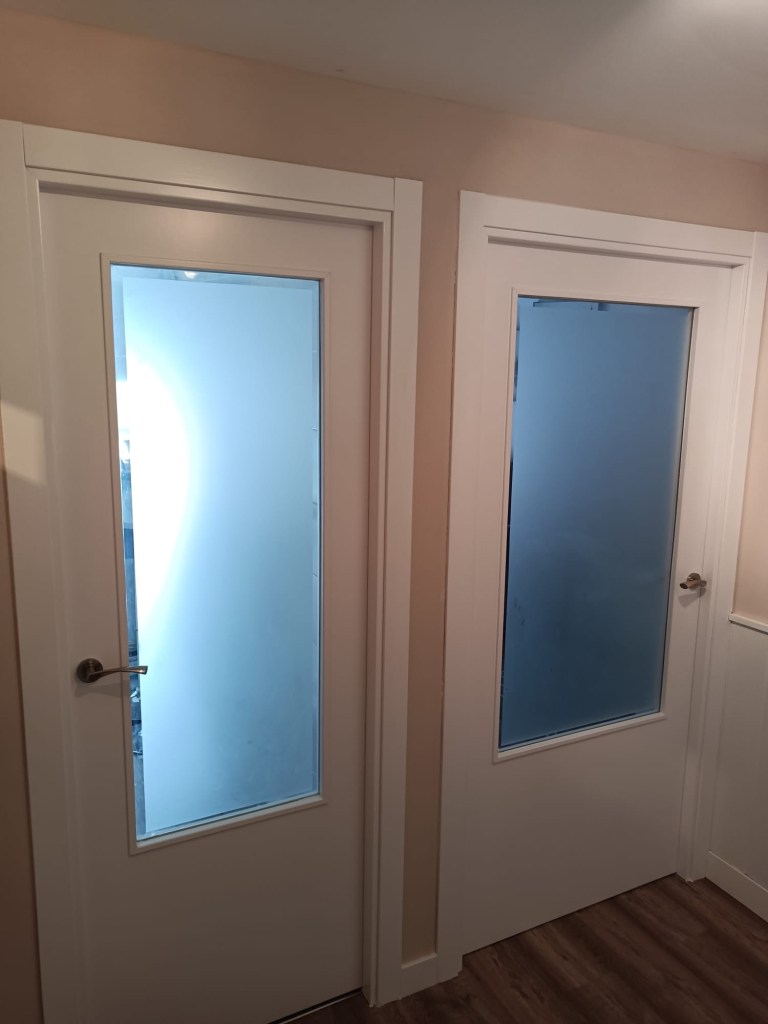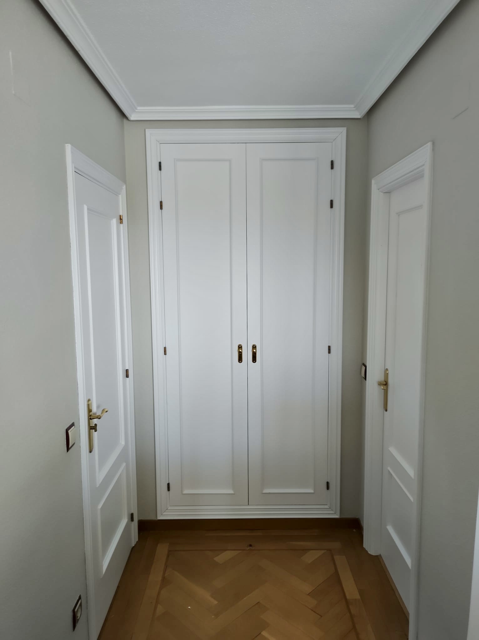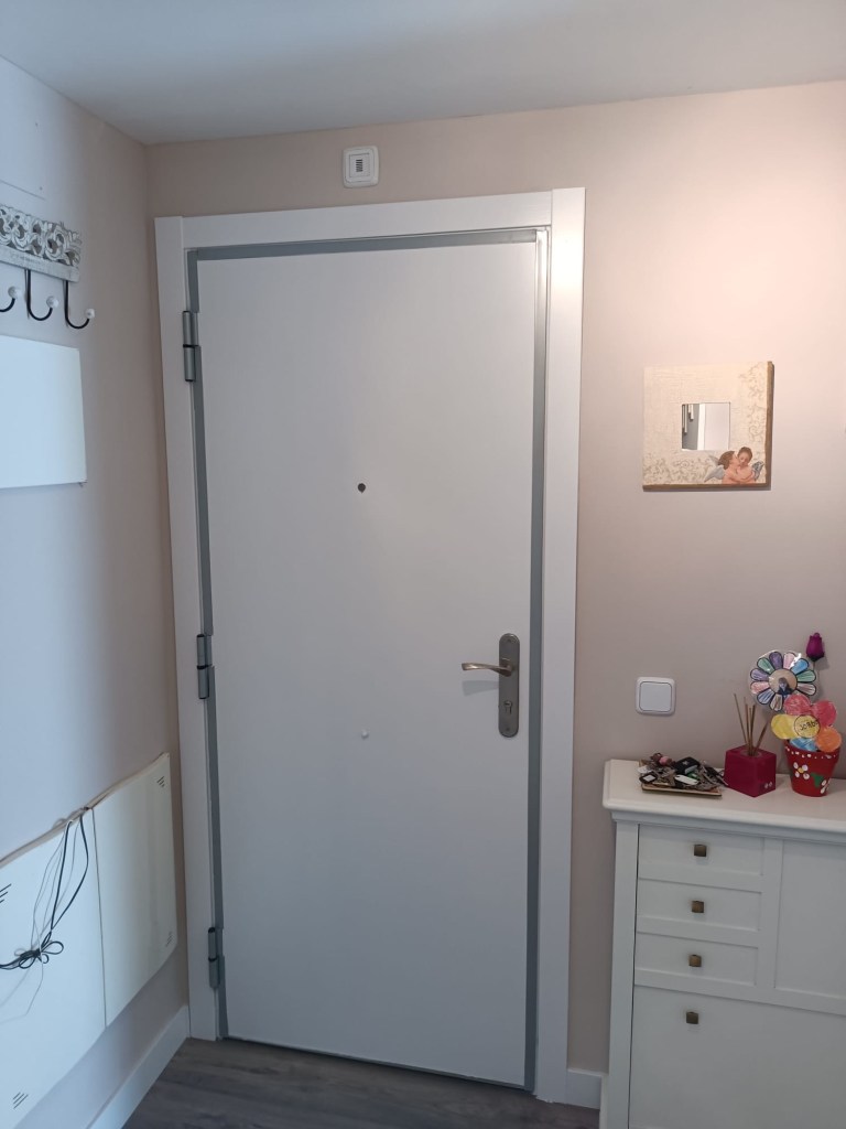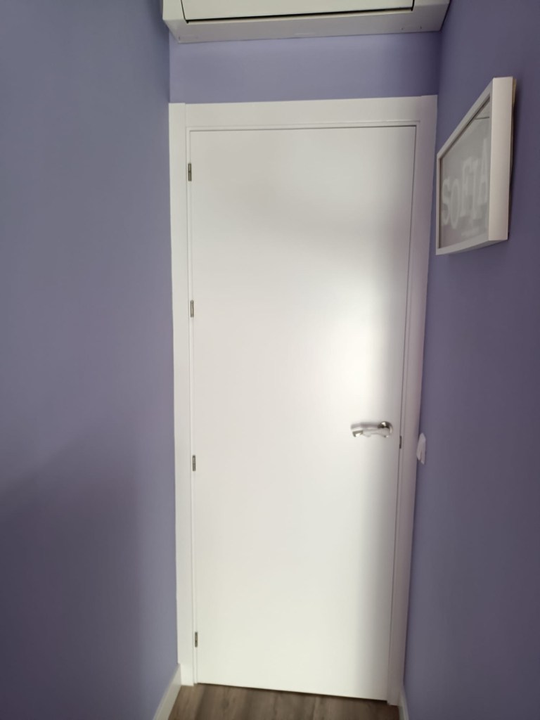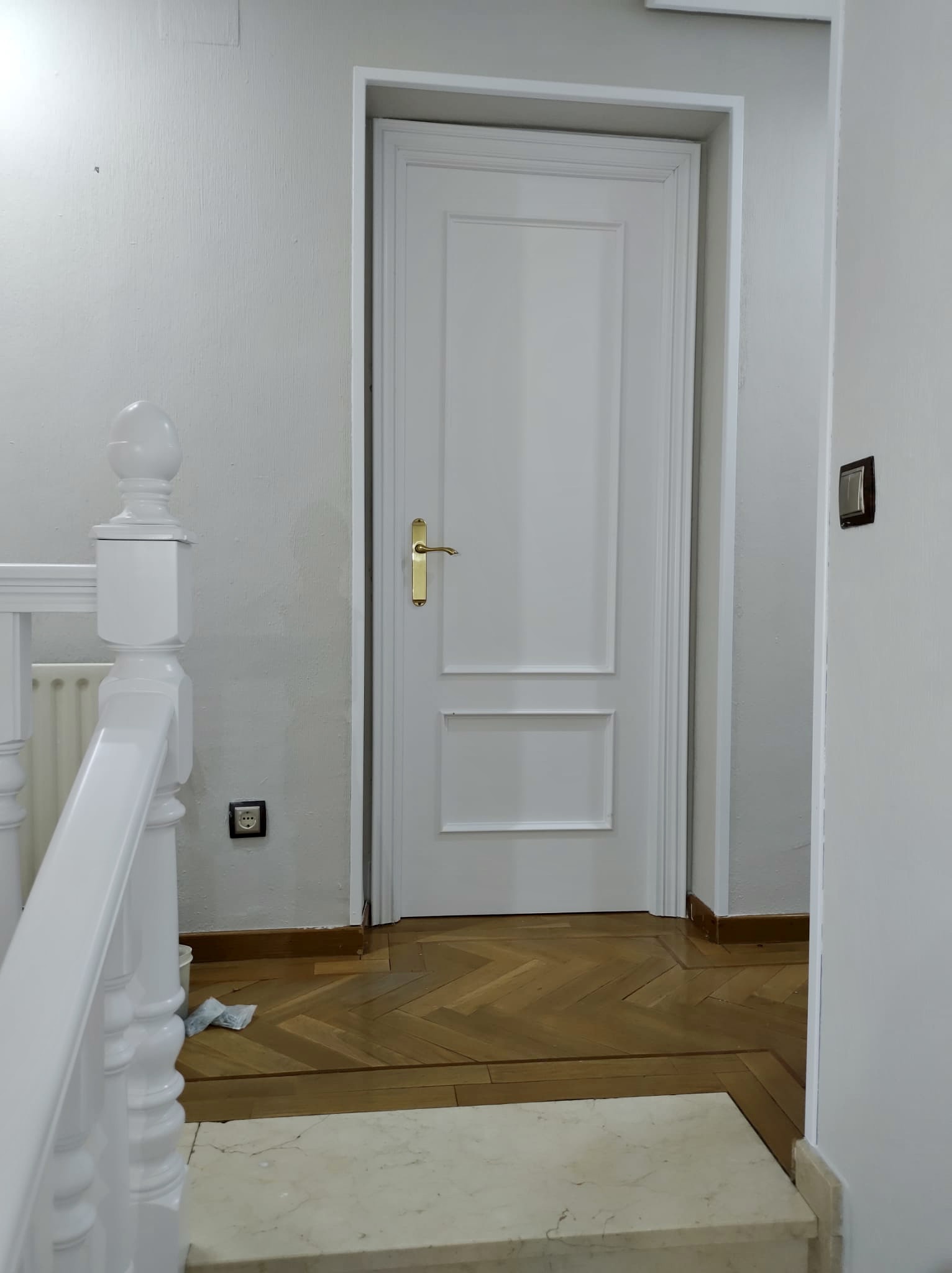 Se han realizado trabajos de lacado en blanco satinado de puertas de paso, armarios y puerta blindada.