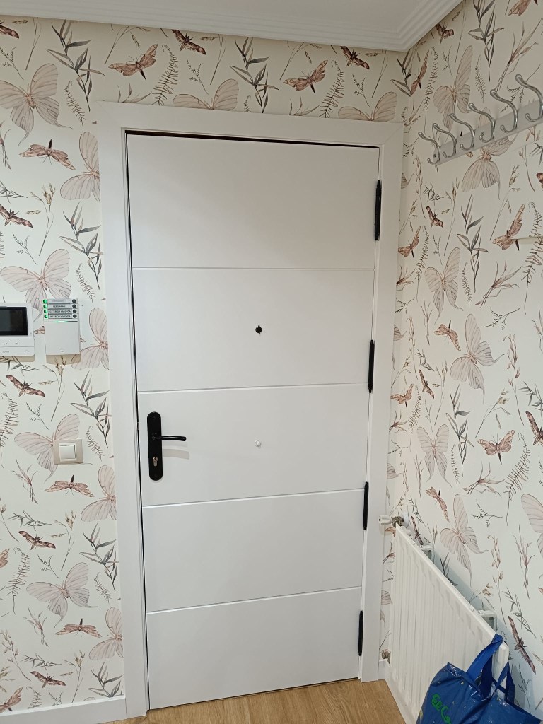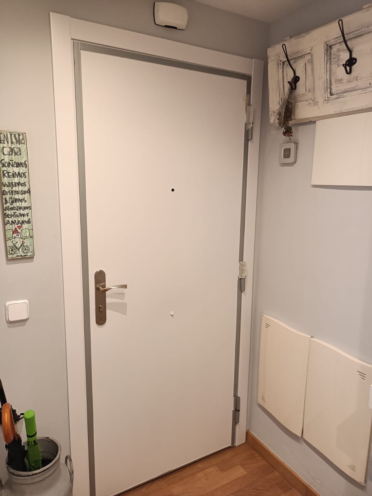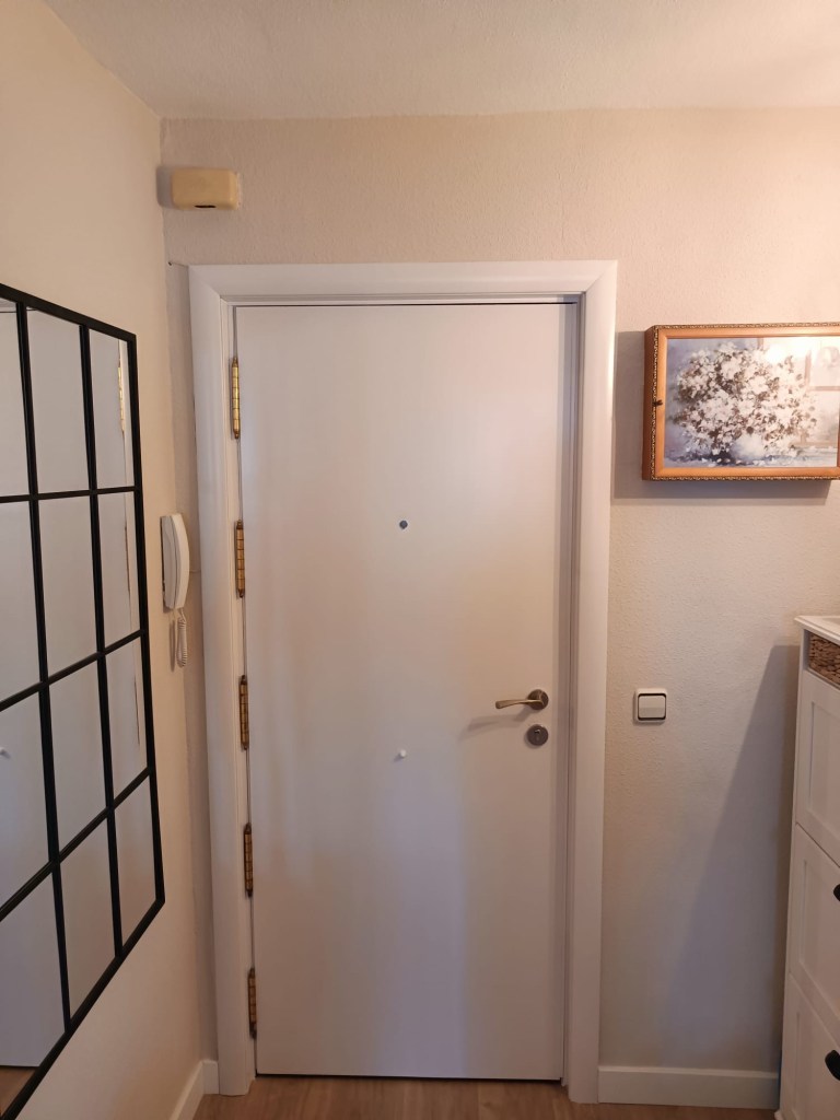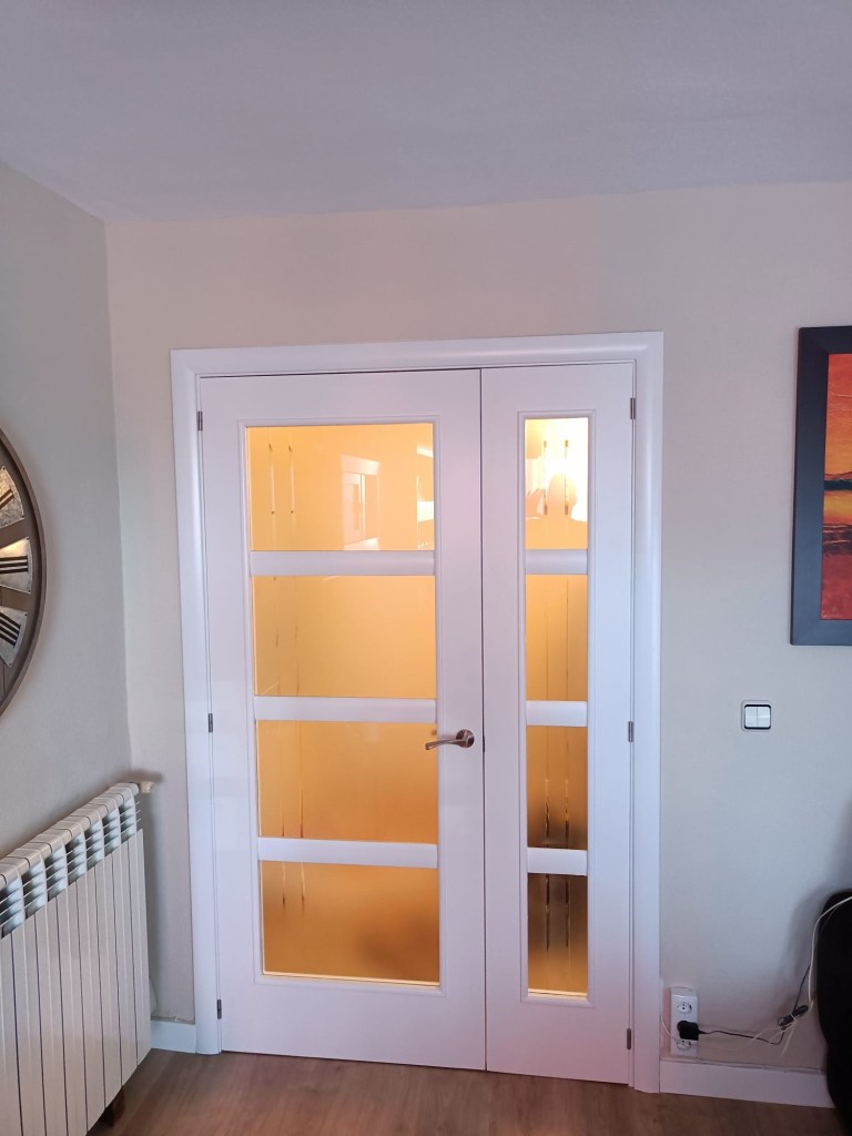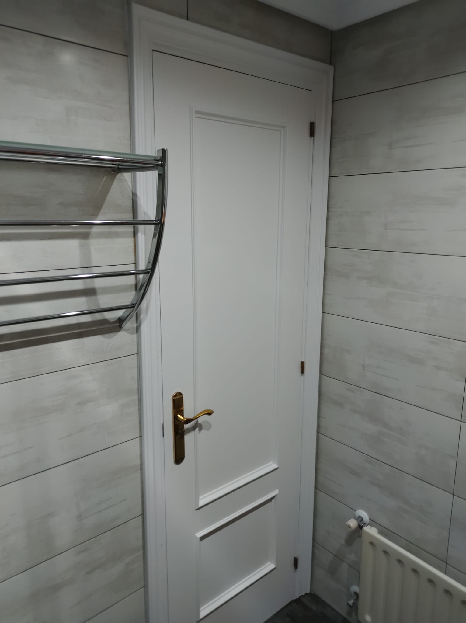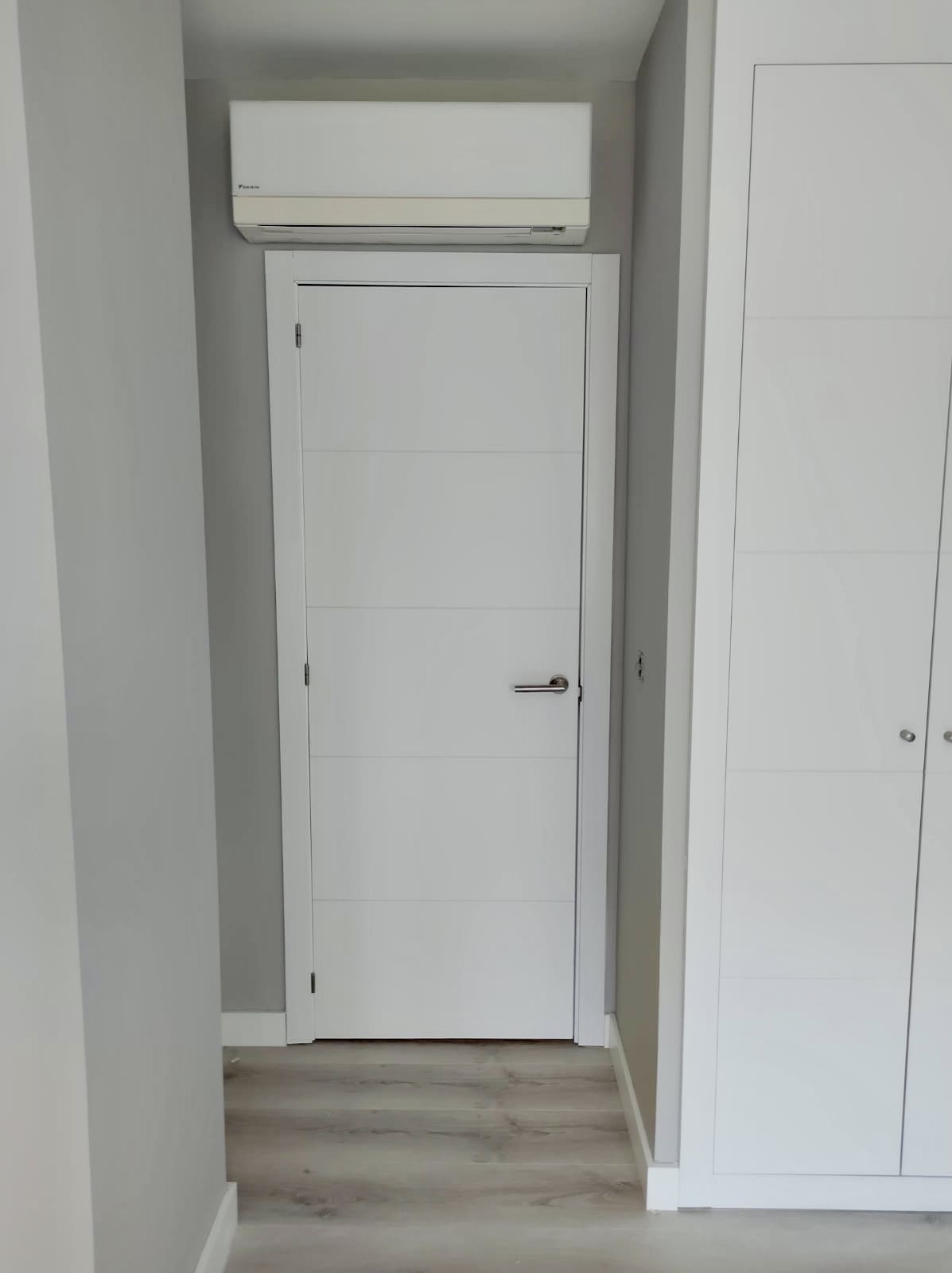 Se han realizado trabajos de lacado en blanco satinado de puertas de paso, armarios y puerta blindada.