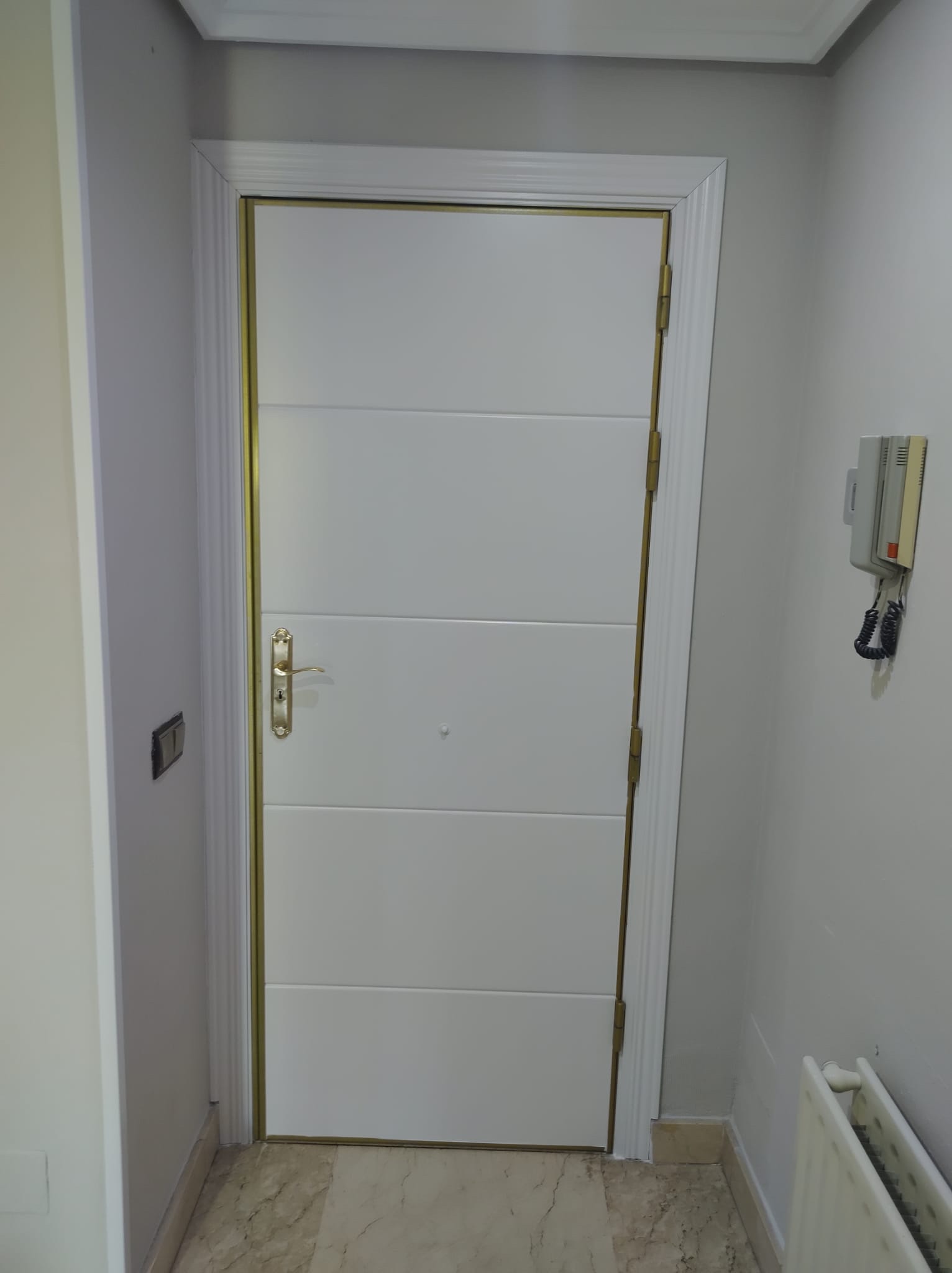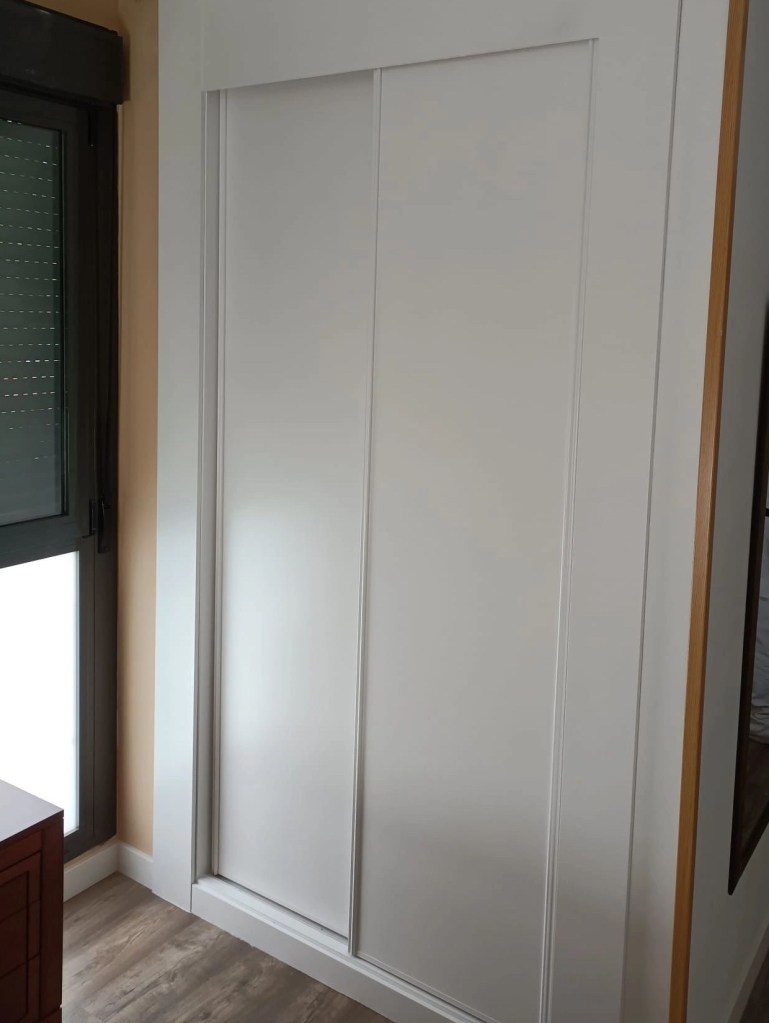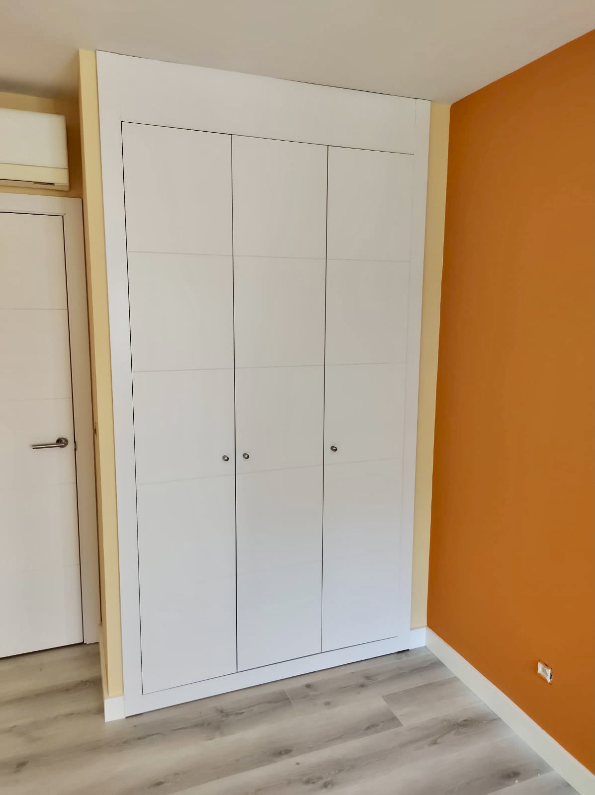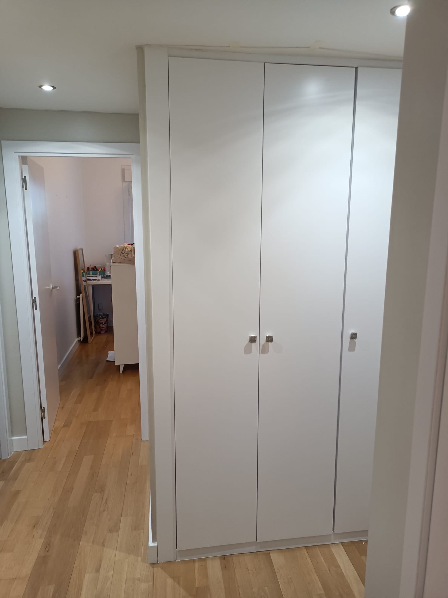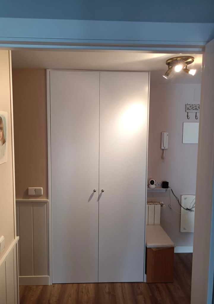Se han realizado trabajos de lacado en blanco satinado de puertas de paso, armarios y puerta blindada.