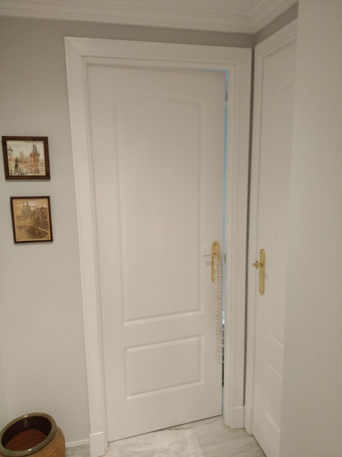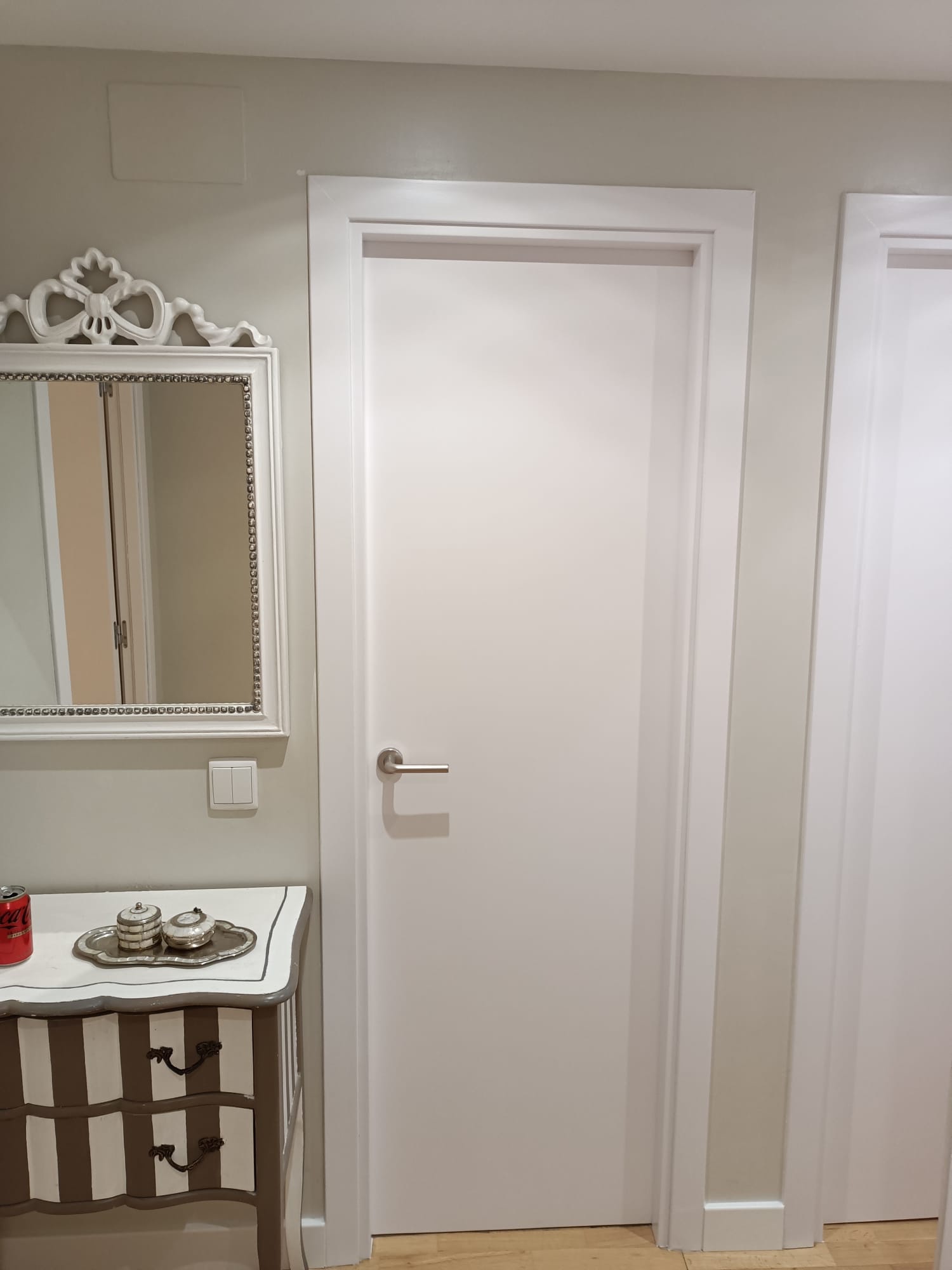 Lacado de puertas en este precioso piso ubicado en San Sebastián de los Reyes, Madrid. Todas las puertas de la casa y los armarios han sido lacadas en nuestro taller en cabina. Las jambas y los marcos en el domicilio y también a pistola con la misma laca y color. Trabajo muy limpio y todo en menos de una semana. El resultado es impecable y una casa bonita con aspecto rejuvenecido y luminoso. Los clientes increíblemente felices con su nuevo hogar.