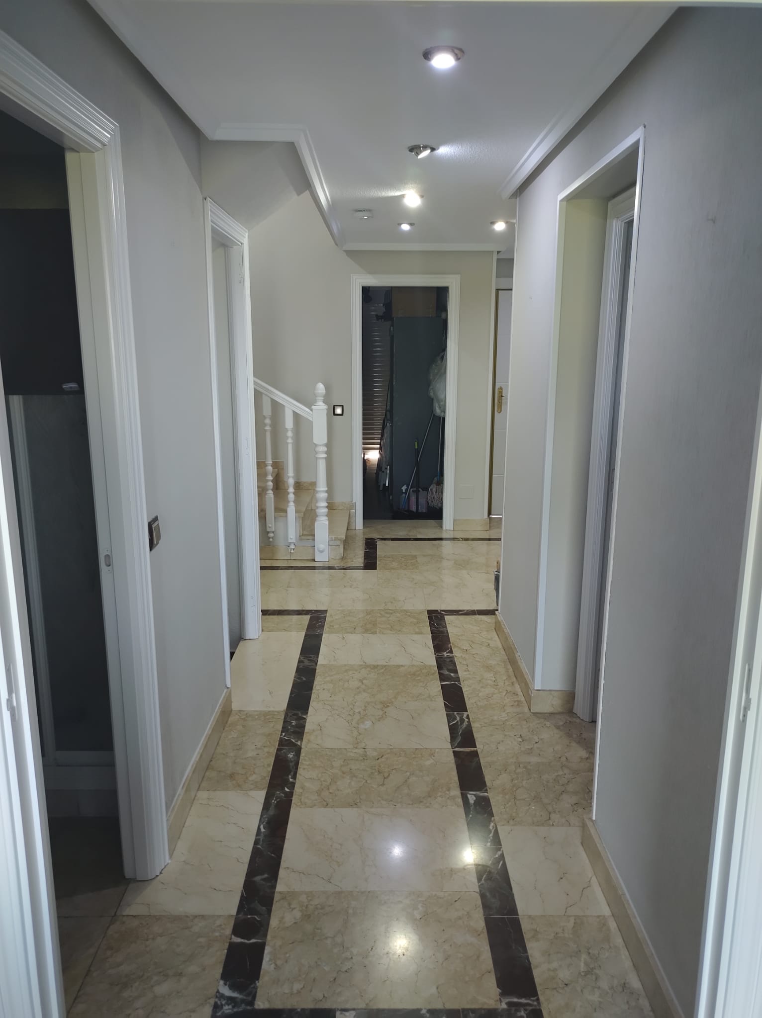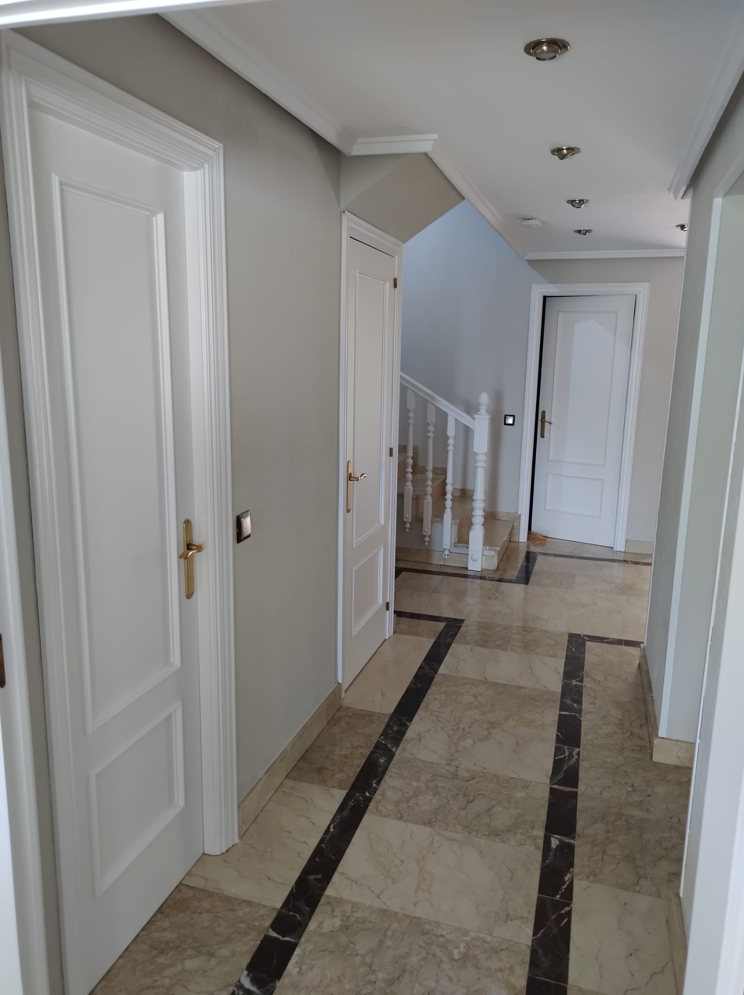 En este estupendo chalet se han realizado trabajos de lacados de puertas y armarios en blanco, lacados de ventanas y pintura plástica en techos y paredes de toda la casa.