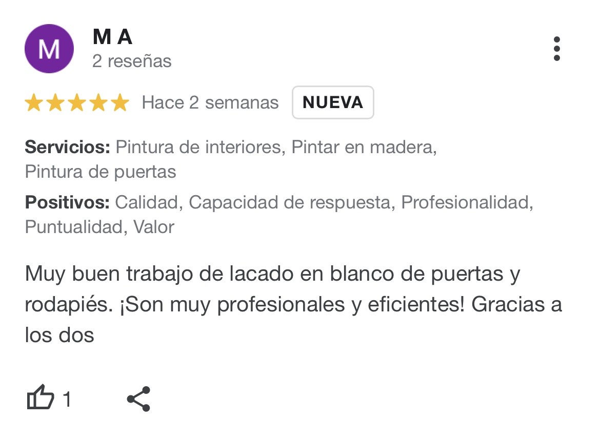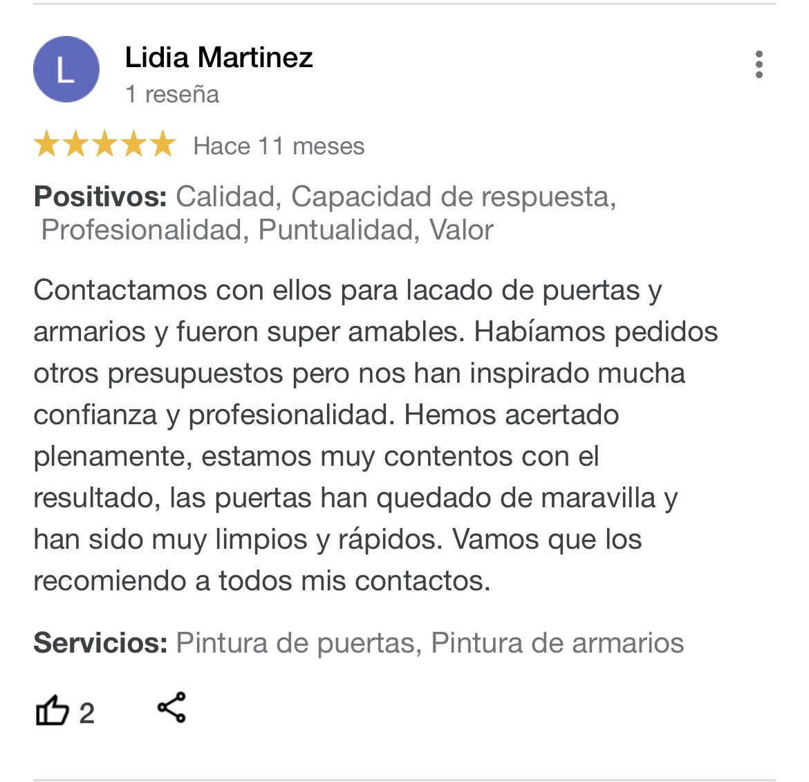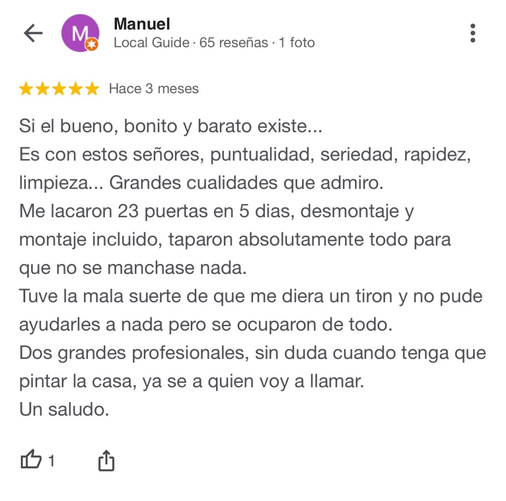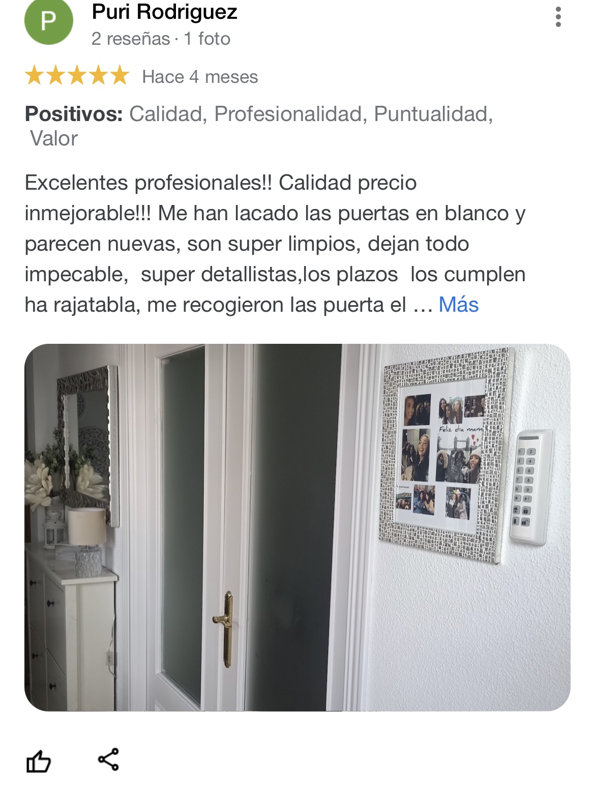 Valoraciones de clientes de Lacados y Pinturas Madrid lacado de puerta en toda la Comunidad de Madrid