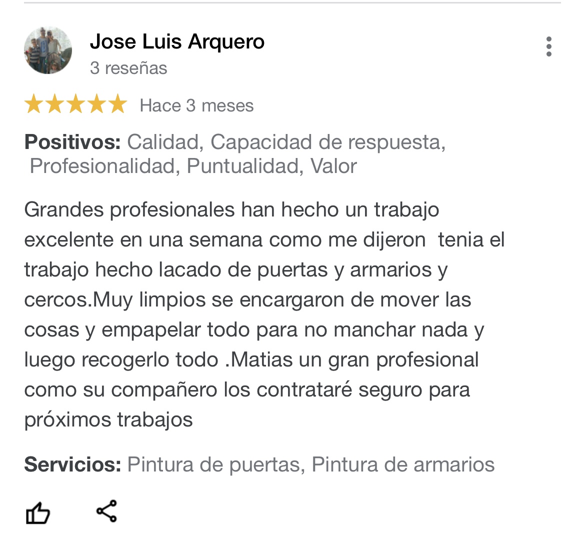 Valoraciones de clientes de Lacados y Pinturas Madrid