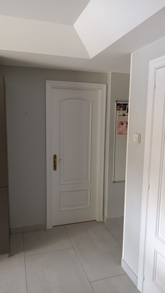 Todas las puertas de la casa y los armarios han sido lacadas en nuestro taller en cabina. Las jambas y los marcos en el domicilio y también a pistola con la misma laca y color. Trabajo muy limpio y todo en menos de una semana. El resultado es impecable y una casa bonita con aspecto rejuvenecido y luminoso. Los clientes increíblemente felices con su nuevo hogar.