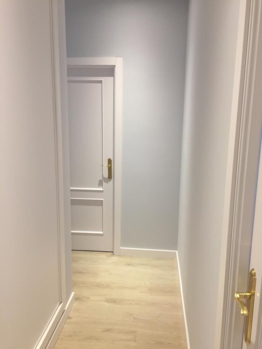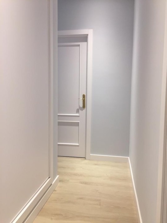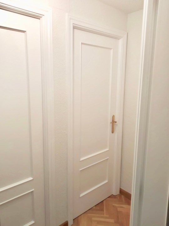 Un precioso piso muy amplio en la zona de Carabanchel Alto ha solicitado nuestros servicios para lacado de puertas de paso y armarios y cambio de rodapié en color blanco a juego con las puertas.