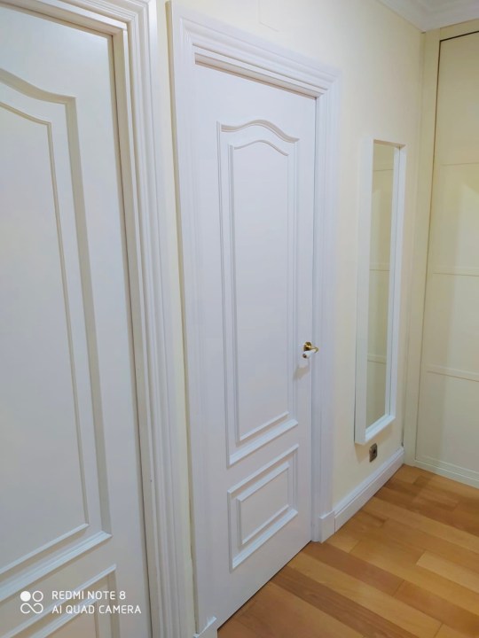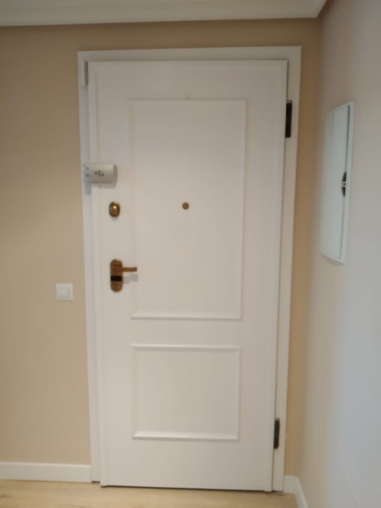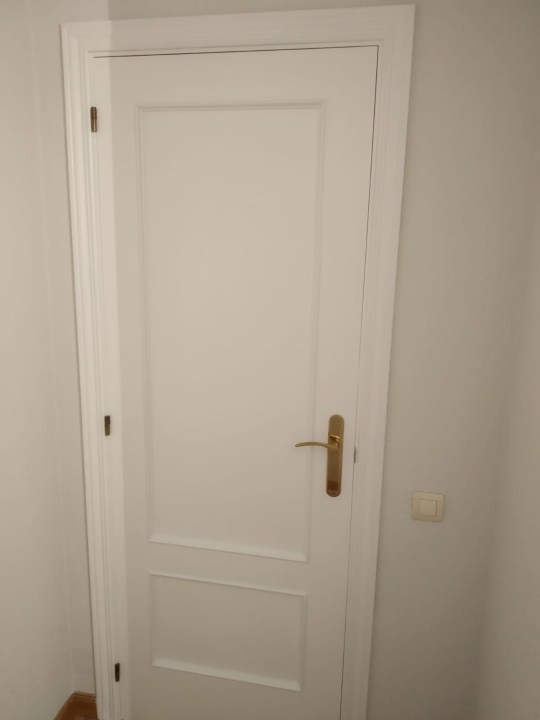 Se han realizado trabajos de lacado en blanco satinado de puertas de paso, armarios y puerta blindada.