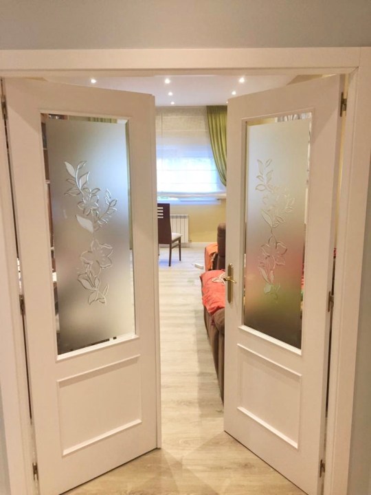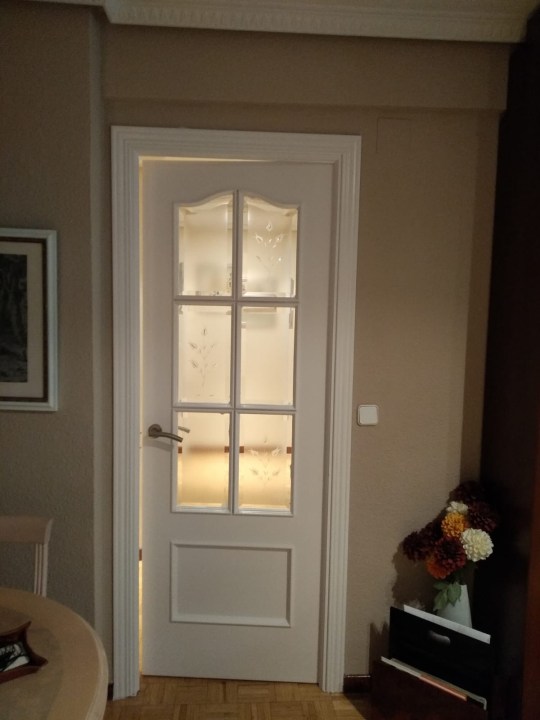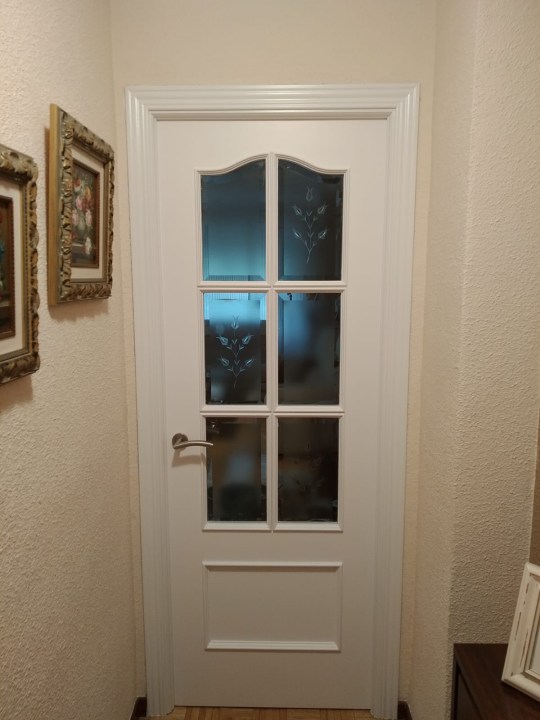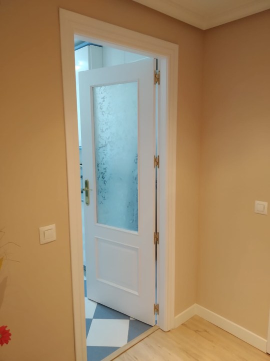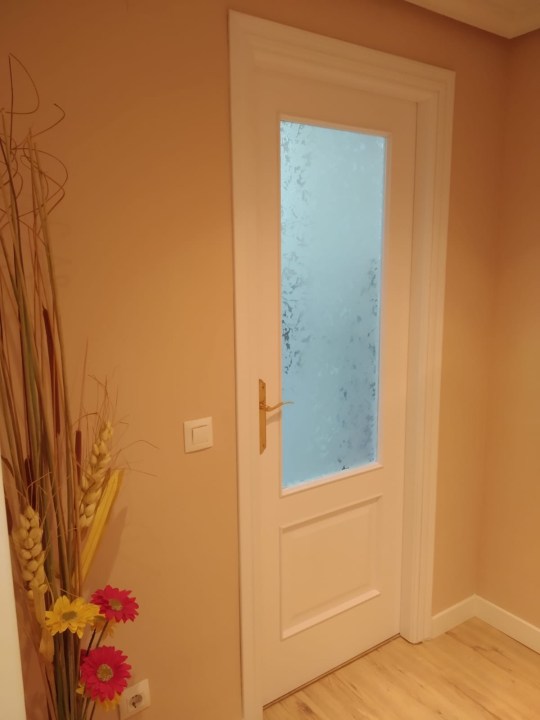 Lacamos puertas con cristal, puertas de paso y la puerta blindada de la entrada se laca dentro de la casa.