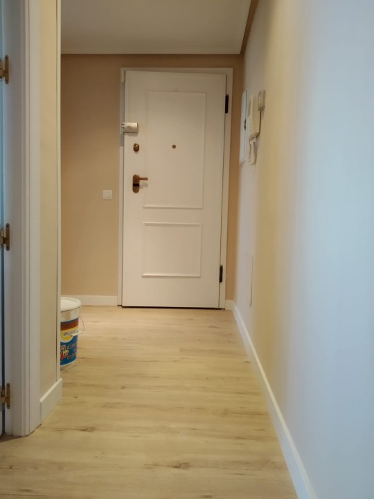 Pintura plástica color , rodapié nuevo blanco lacado y colocación de tarima.