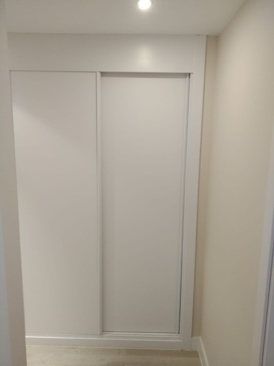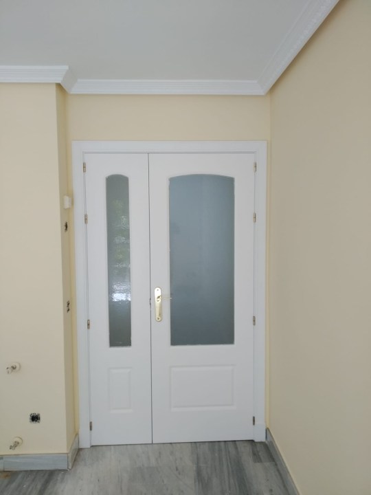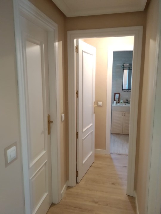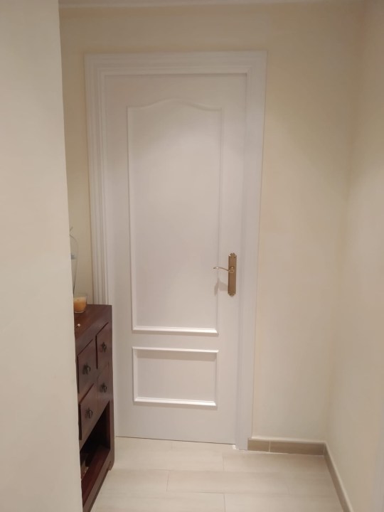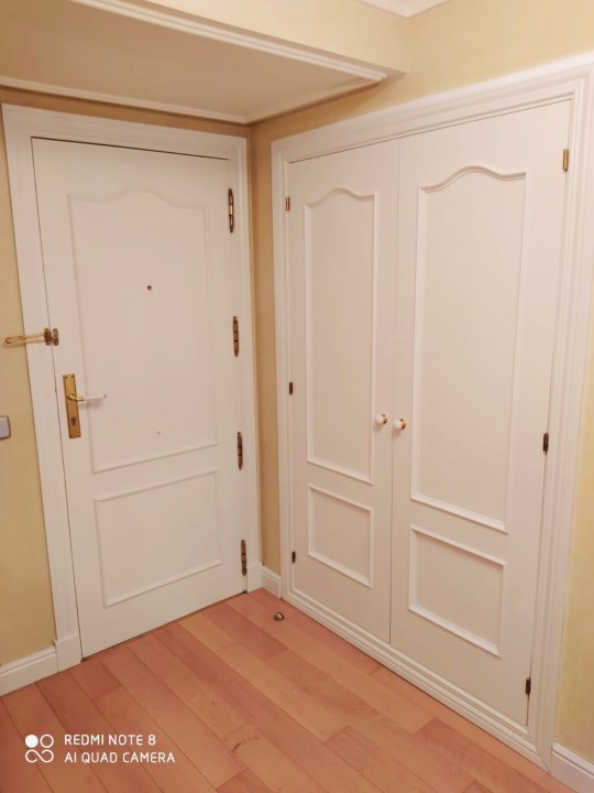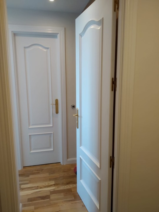 En este preciso piso se han realizado trabajos de lacado en blanco satinado de puertas de paso y armarios.