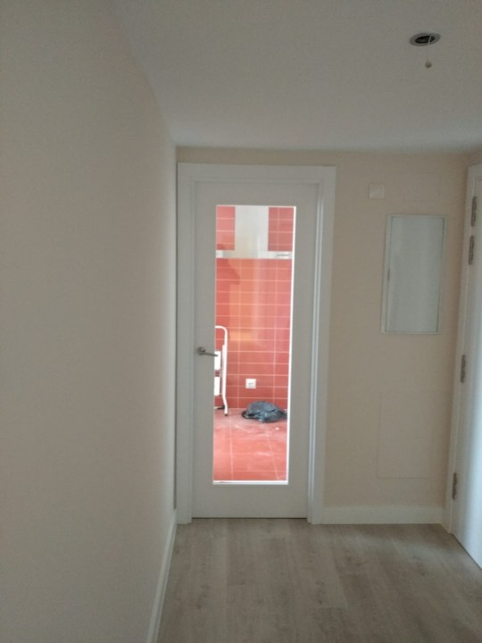 En este piso se han realizado trabajos de lacado de puertas en blanco, lacado del rodapiés y pintura plástica en las paredes.