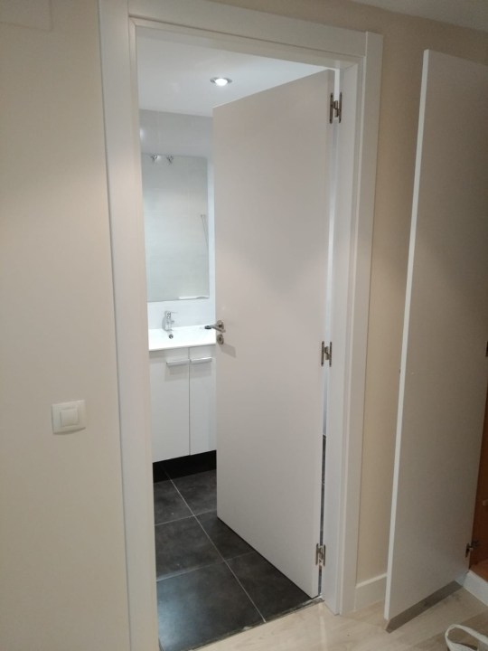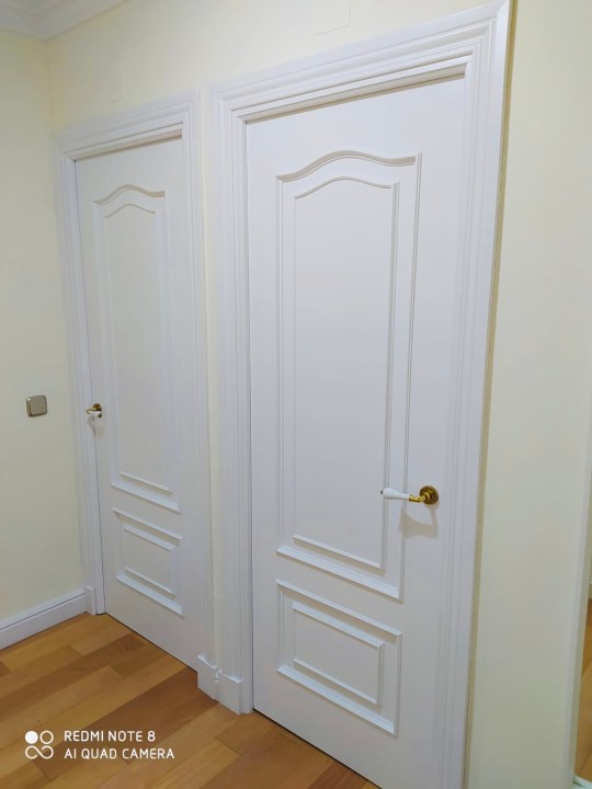 Se han lacado las puertas en el taller en blanco satinado. Marcos y jambas también lacadas en blanco.